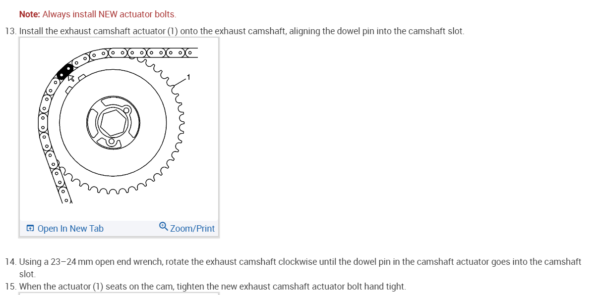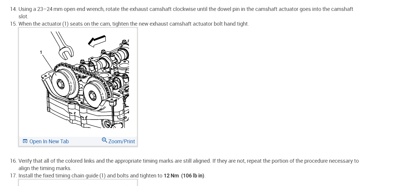 Recently replaced the timing chain. But when I started the car, it ran rough and threw a p0017 code. When I did the procedure the first time the cam sprockets were at the 2 o’clock position for the intake cam sprocket and the exhaust cam sprocket was at the 10 o'clock position. So, I decided to redo the timing procedure to correct the timing but not I have the crank key at 12o clock position at TDC, the cams are not in the right place. How do I get the cans to rotate to the correct positions?