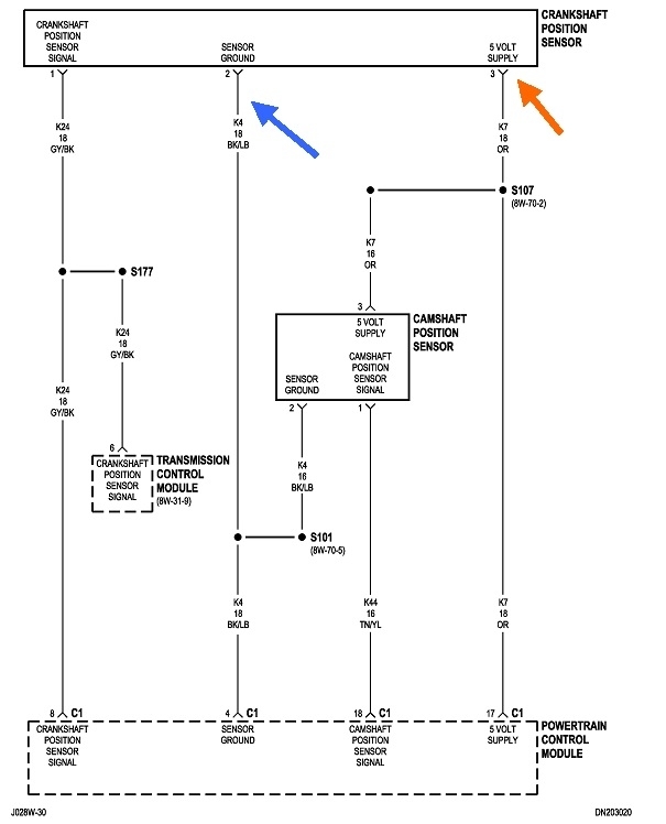 The signal wire is a little trickier, and you may not get any usable information when measuring on that wire. With some sensors, you'll see the voltage switch from near 0 volts to near 5.0 volts as you turn the crankshaft by hand, but for a majority of position sensors, speed of that motion is a factor. It may take cranking speed for the sensor to generate a signal, and that's much too fast to read on a voltmeter. That's why we have to use a scanner and let the Engine Computer tells us if it's seeing the signal pulses.