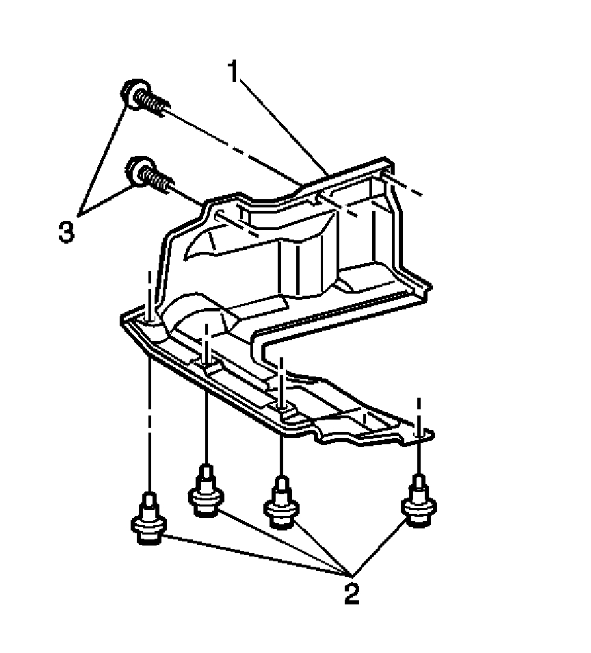 2. Remove the two bolts (3) that secure the stone shield (1).