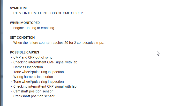 However if the code is P1391 which is the most common cam crank code then the testing is attached below.