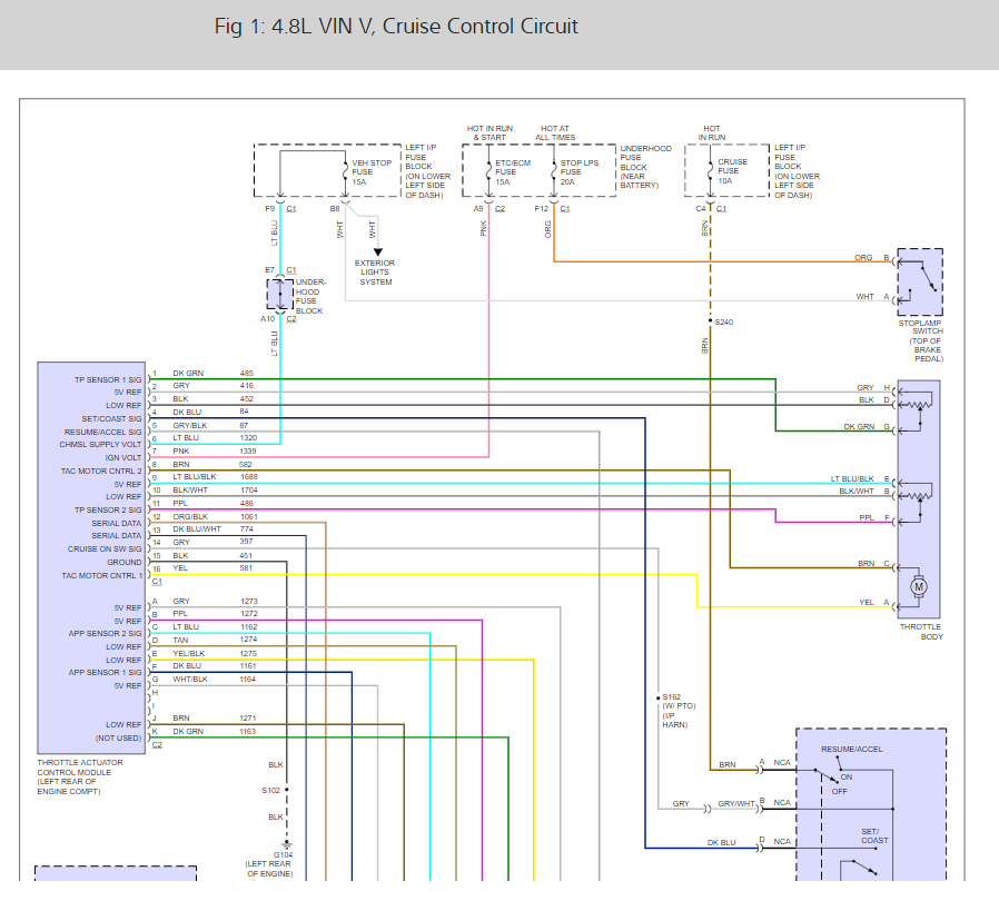 About two weeks ago, I noticed my cruise control no longer worked. I hoped it was a fuse but it was not. I kept driving it until I had time to work on it. Last week I happened to be at the rear of the truck while it was idling and I noticed the hi mount brake light was on but dim.