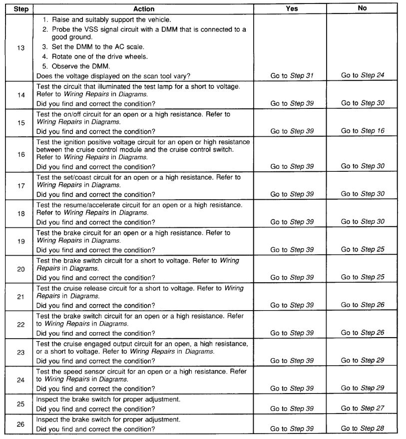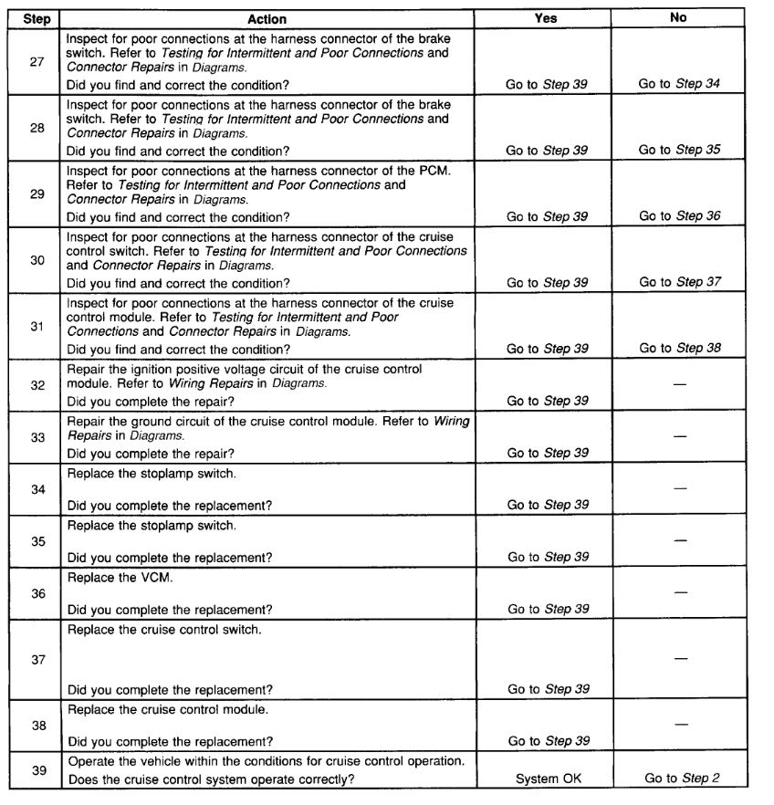 If the module sees these things then it tells the VCM to engage the cruise. So what I would suggest is going to the cruise module or VCM and check the Cruise Engage Input. If there is voltage on this circuit when you are driving down the road the then VCM is the issue and not holding the speed.