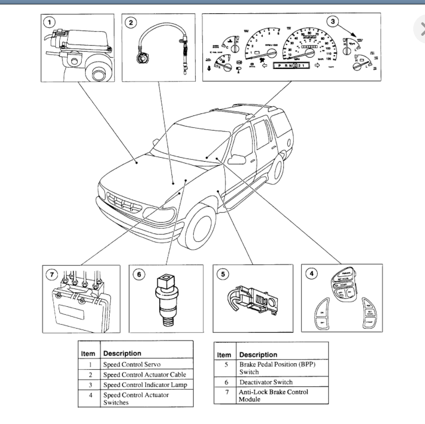 The brake pedal switch is on the brake pedal arm, and it tells the vehicle if you are pressing the brakes. Sometimes these stick on slightly and if it thinks you are pressing the brakes then it will not turn the cruise on.