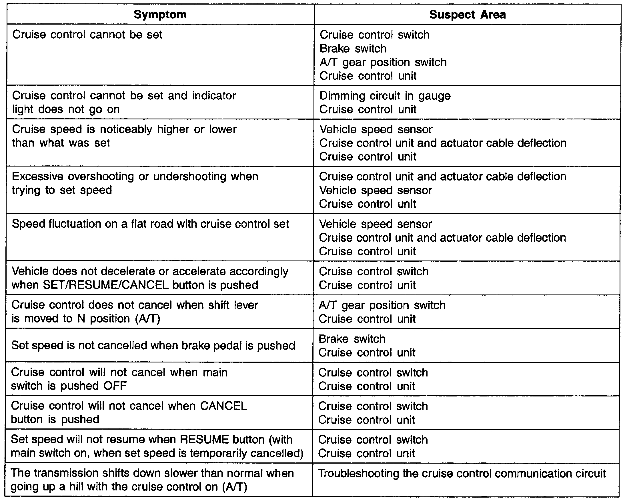Okay. If it isn't working at all, it could be a servo, module, cable, switch, and so on. I am going to provide the diagnostics related to checking the switch and then the unit. Before you get started, make sure to check the fuses listed at the end of the diagnostics listed.