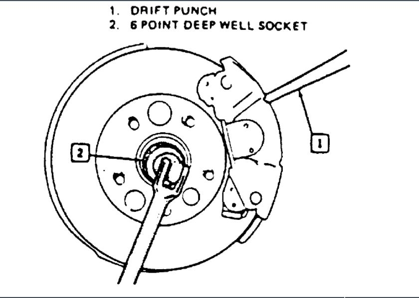 2. Install a brass drift or a screwdriver to prevent the rotor from turning, Fig. 7 .