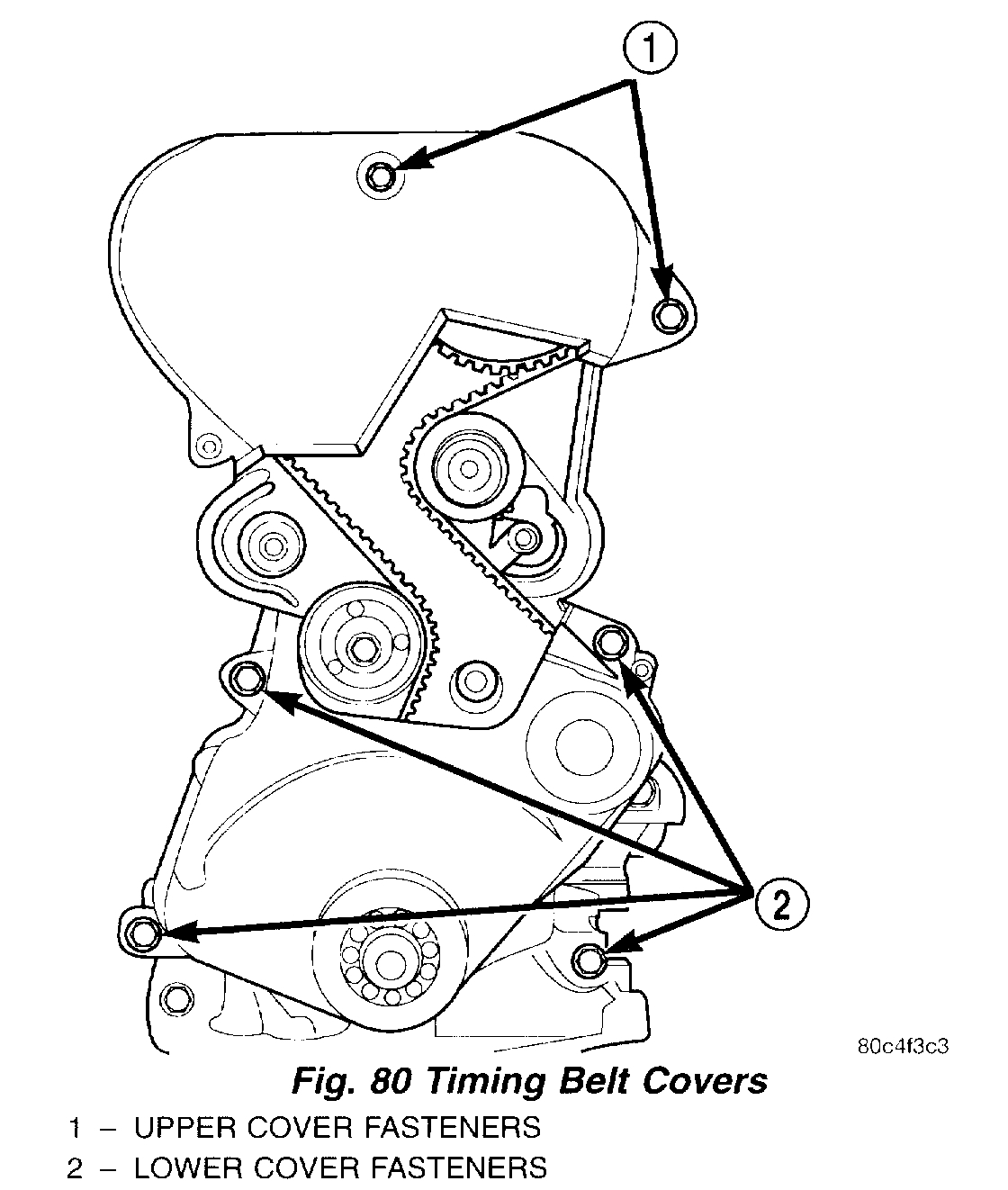 8. Install upper timing belt cover and tighten fasteners to 4.5 Nm (40 in. Lbs.) (Fig. 80).
