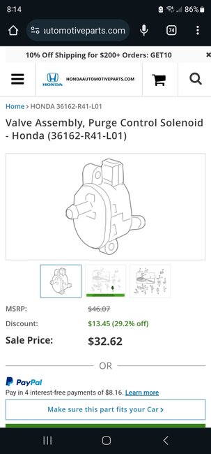 Oh, okay, I was just suggesting trying to blow air through the Purge valve to see if it was sticking open, usually a starting issue after refueling has something to do with the Evap (fuel vapor management system). If you can't blow air through the original Purge valve I would put that one back on the vehicle for now, since it's the OEM Honda part. The one you got is most likely an aftermarket part.
