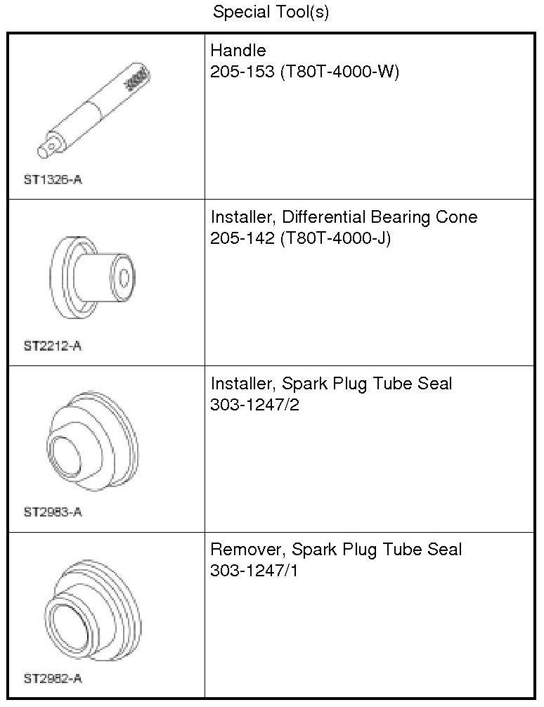 - Using the VCT (Variable Camshaft Timing) Spark Plug Tube Seal Remover and Handle, remove the seal(s).