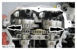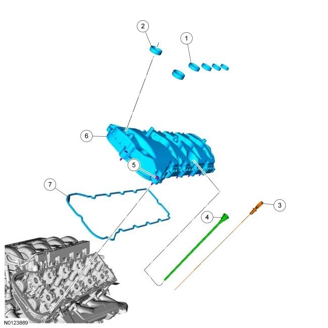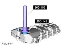 NOTICE: During engine repair procedures, cleanliness is extremely important. Any foreign material, including any material created while cleaning gasket surfaces, that enters the oil passages, coolant passages or the oil pan, can cause engine failure.