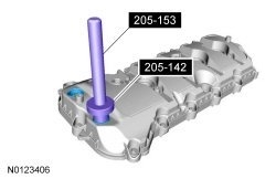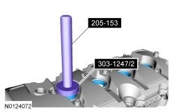 Using the VCT (Variable Camshaft Timing) Spark Plug Tube Seal Installer and Handle, install new spark plug tube seals.