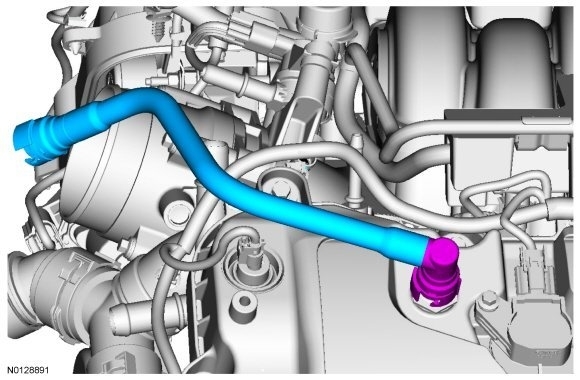 2. Remove the crankcase ventilation tube. For additional information, refer to the quick connect coupling procedure in Fuel Delivery and Air Induction.