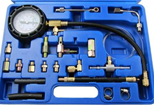 The fuel injectors can be tested by using a suitable scan tool and fuel pressure tester and carrying out an injector balance test. Alternatively, injector testers and fuel pressure gauges can be purchased online, see images below. No expensive diagnostic tool is required.