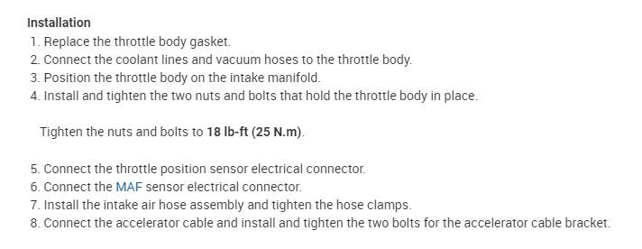 Putting head back on need torque values intake to head and intake to throttle body.