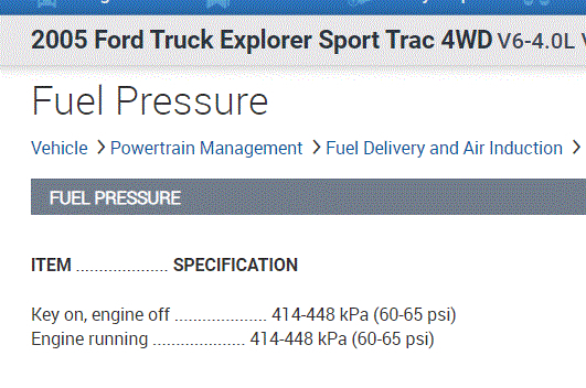 I attached the manufacturer's fuel pressure specifications below. (pic 1)