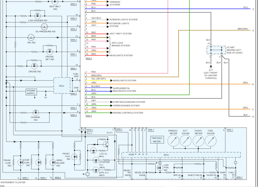 I'm not sure which fuse you are having issues with. So, I attached the instrument cluster wiring schematic below. There were only two pages of schematics. However, I had to cut each one in half to make it readable for you. I did overlap the two so you can follow from one to the next. Additionally, I highlighted the wires involved. Pics 1 and 3 will be the most helpful for you.