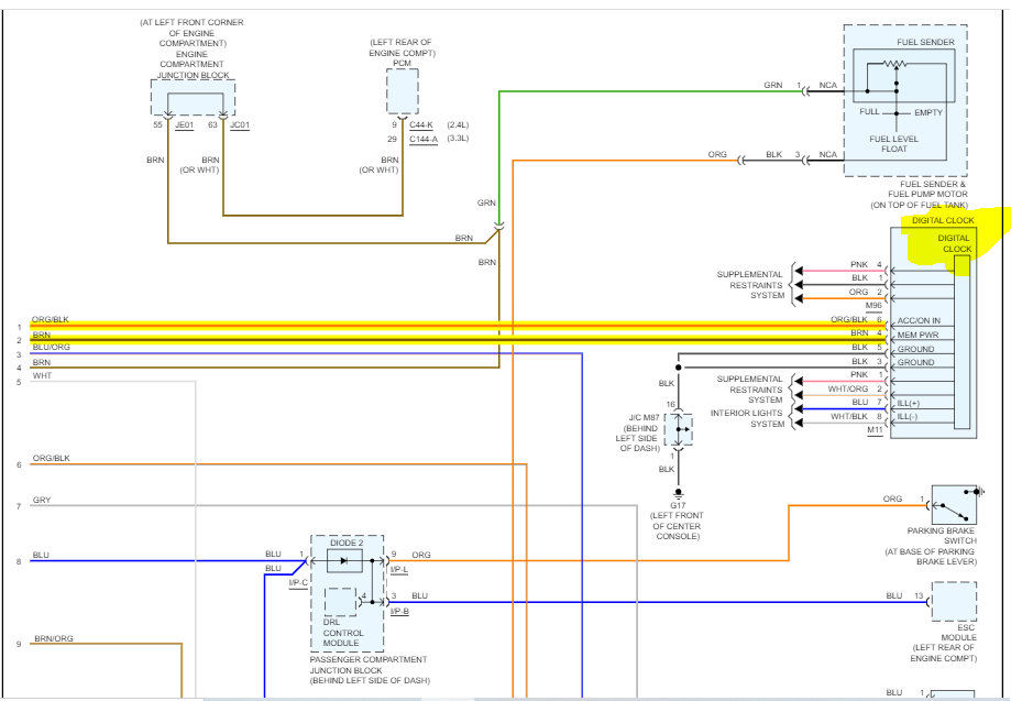 There are two fuses related to the digital clock. One is power when the key is on and the other is for memory when the key is off.