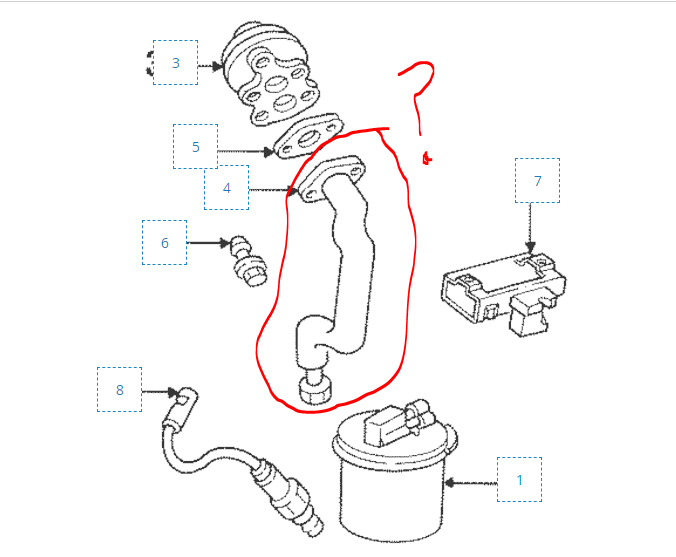 I managed to damage the exhaust recirculation tube during a recent repair. The tube had to be removed in order to remove the upper intake manifold to gain access to the fuel injectors. The end of the tube that bolts into the exhaust pipe seized up and got twisted up beyond repair. I have not been able to locate a replacement tube. This tube is to divert hot exhaust to or from the exhaust pipe to the EGR valve. It is a full-length flexible metal tube that has an insulation wrap full length. The tube ID is 1/2" and I think it is about 8" long. The EGR end of the tube has a two-bolt mounting flange. The other end has a JIC female nut that secures the tube to the fitting in the exhaust pipe. I have had no luck so far with any vendor that has this tube picture or part number. I can not even find the EGR valve picture or part number, however the EGR valve was working before the tube got damaged, so I don't need the EGR itself. I need to know the factory part number for the tube only. And if you know who might have one. I think the Chevy Cavalier uses the same motor. This is a fuel injected multi-port engine, not a carbureted engine.