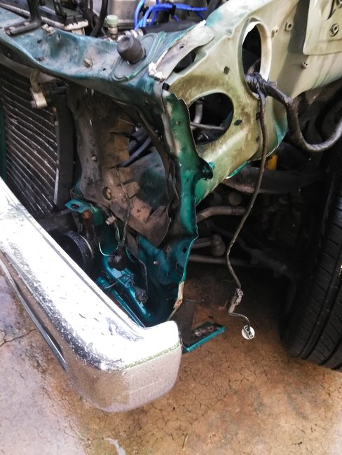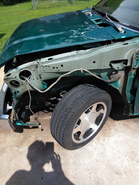 The passenger side is okay. I'm looking for a front clip. Both fenders and head light and radiator frame. Most of this can be pulled out with a come along.