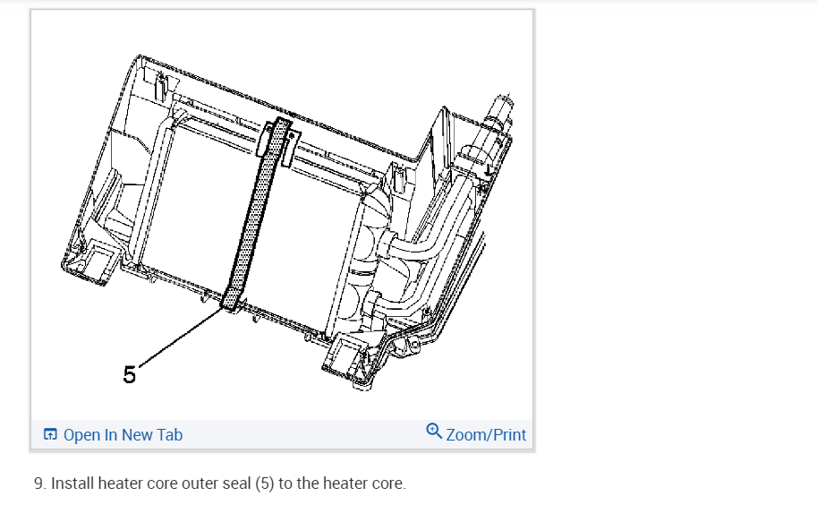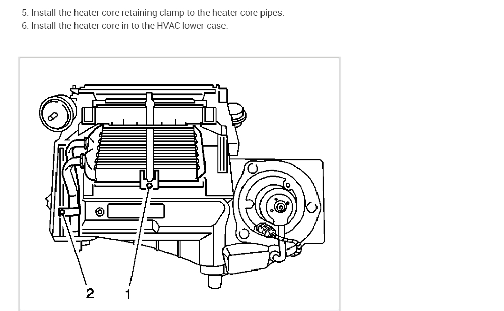 Pretty soon I had the dash disassembled the core out and a bunch of dash parts covering the back seat. New core went in fairly easily getting to the clamps was difficult. Most of the stuff to put back in is obvious; radio, climate control module, under dash covers, etc. I got confused by the 2 covers that wrap the heater core and the diagrams helped there. After that It took time and patience to git er done. A small victory for me. Thanks for your help!