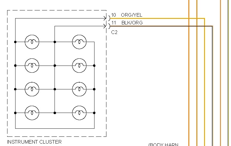 When I use my headlights, the backlighting that illuminates the gauges doesn't come on. I have changed both fuses. The dimmer appears to be working fine as it dims the odometer properly. All the appropriate lights come on at start and go out as they should within a few seconds. Is there a bulb(s) for this?