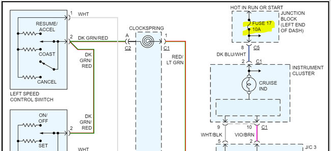 The one thing that stands out to me is the CC also gets power from fuse 17 in the interior fuse box. Remove that fuse and inspect it for corrosion as well as where it plugs into the box. Make sure the connector pins in the box are clean and not pushed in. I am basing this on the idea that the cluster and CC stop at the same time. See the pic below I have a feeling this is where the problem originates.