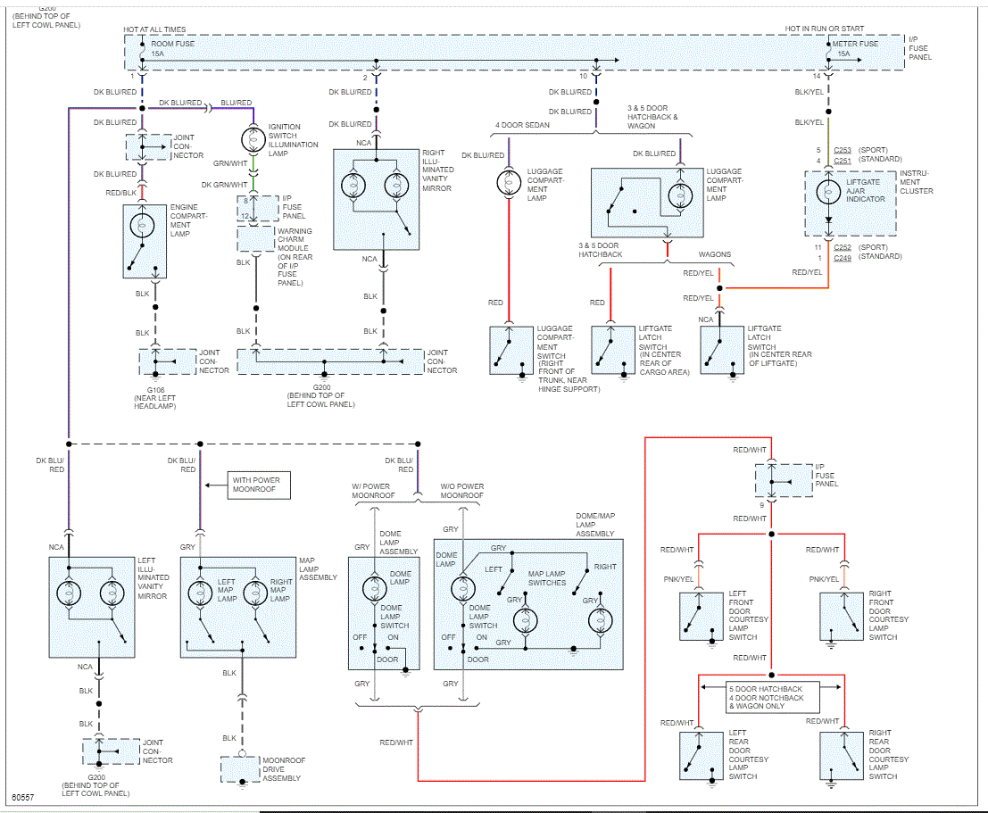 the fuses involved. The only thing I am seeing in common is a ground. Ground 200 (G200) is at the top of the left kick panel and will be black in color. I also noted a joint connecter involved.