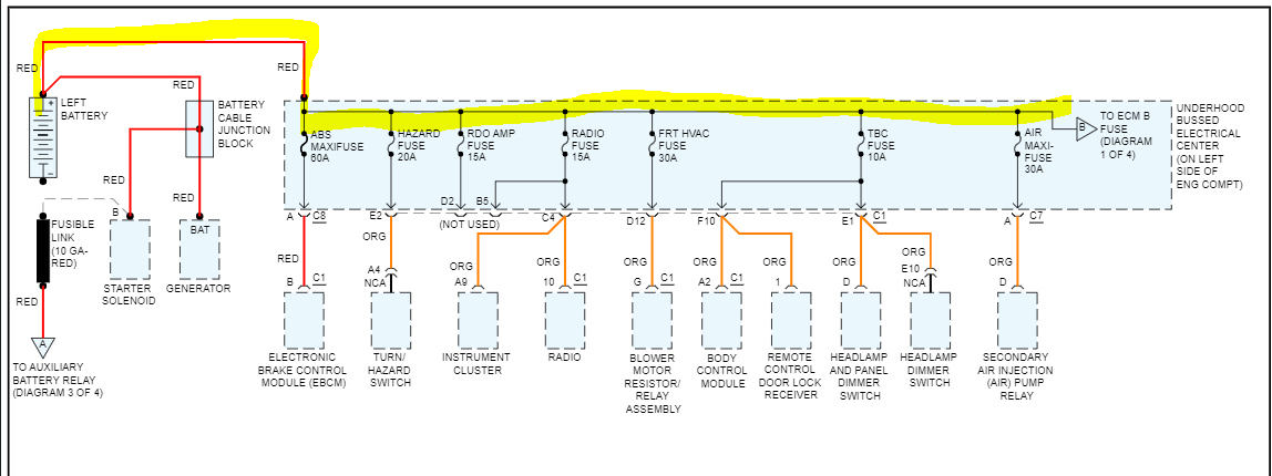 If that is good, pic 2 below is from the ground distribution schematic. Check the two grounds I highlighted to make sure they are clean and tight.