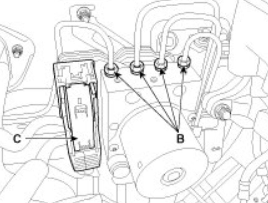 Service info says it could be one of the pressure sensors or the hydraulic control unit itself. However, the diagnostics are a lot vague. Basically, it says to use a scan tool and look at the pressures the pressure sensors show with no brake applied and then with your foot hard on the brake. Then erase the code and see if you can make it set under the same conditions. If the code returns it says replace the sensor, however it also says that to verify it is the sensor you need to use a "known good hydraulic control unit" (IE a new spare) to test with. To remove the unit, you remove the air cleaner ducting, then use an extractor to remove the brake fluid from the reservoir, then disconnect the wiring harness and the brake lines from the unit. Replace it and tighten the lines down. Now use a scan tool and bleed all 4 brakes to remove the air. Bleeding cannot be done without the scan tool, and you will need to use it to verify the repair as well. They do not show any information about the sensor itself, so I believe it is integral to the module.