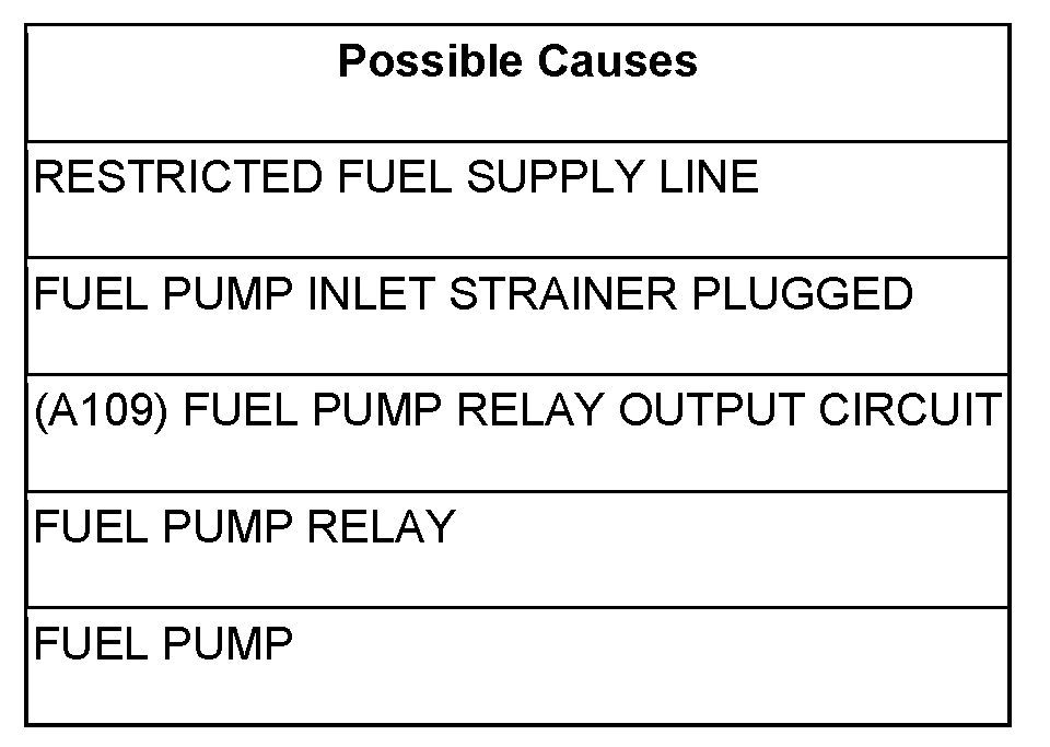 5. (A109) FUEL PUMP RELAY OUTPUT CIRCUIT OPEN