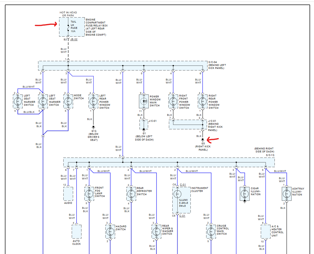 Dash lights stop working. I've checked the battery post, no bad fuses or relays. All taillights, headlights, stop lights, fog lights, license plate lights, bright lights and interior lights, blinkers and hazard work. All warning lights and gear lights work. The seat warmer switch light, main power window switch light and dimmer light switch not working and driver's side window stopped working also. Everything was all working up until replaced transmission mounts and fuel filter. Please help. The vehicle listed above is a GSX.