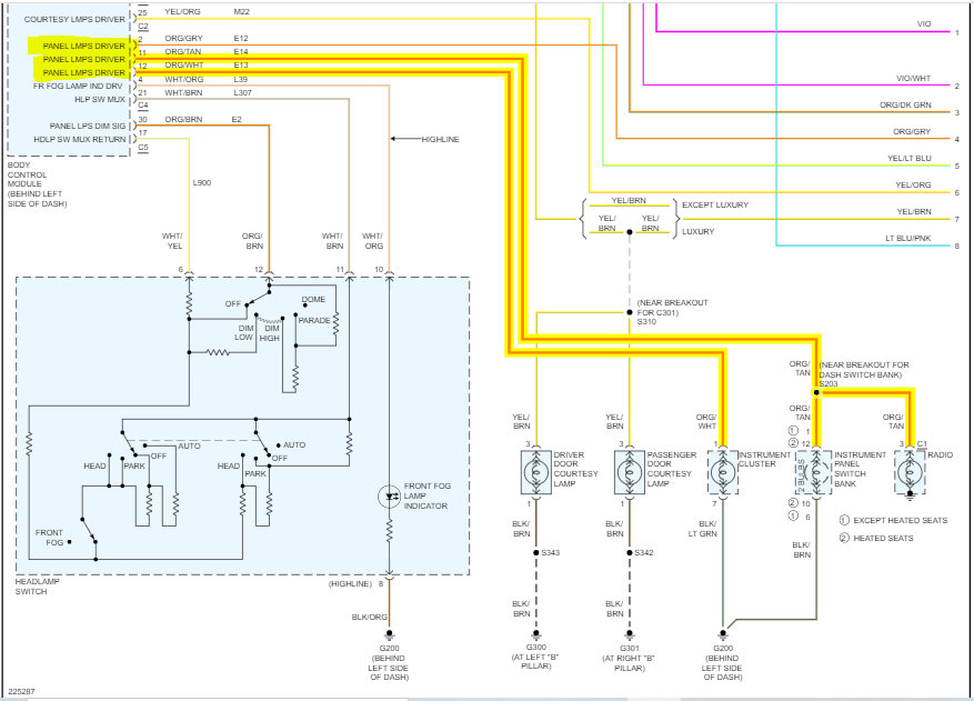 I attached the wiring schematic for the instrument cluster below and highlighted the wires related. There is one indicated that I didn't highlight. That is for the radio.