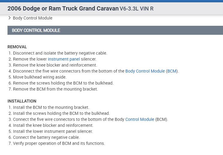 Pic 3 below explains how to remove the BCM. I'm adding them not for a replacement, but so you know the location and what to do prior to disconnecting it. The battery should be disconnected before disconnecting.
