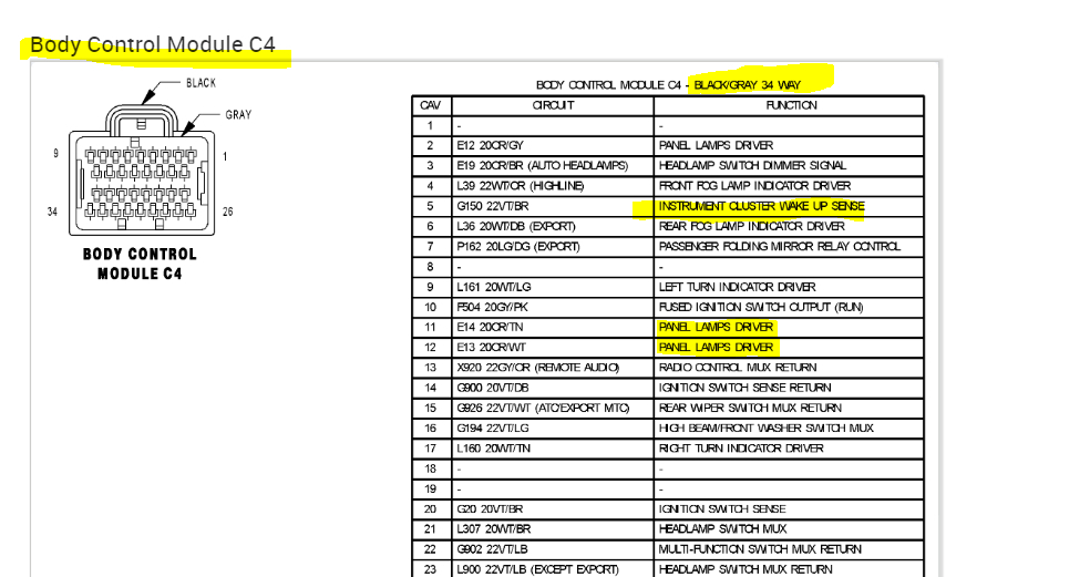What I'm seeing is the power to the instrument cluster is coming from the body control module (BCM). So, here is what I need you to try.