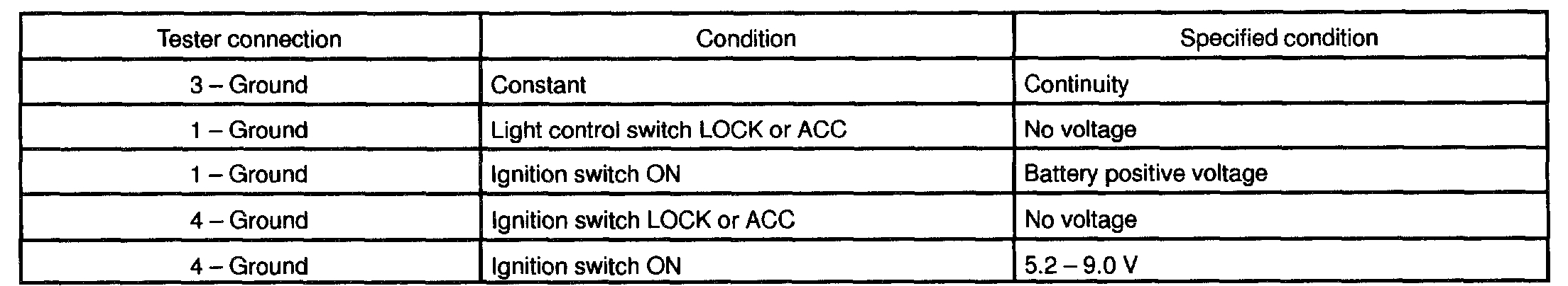 If the circuit is not as specified, inspect the circuit connected to other parts.