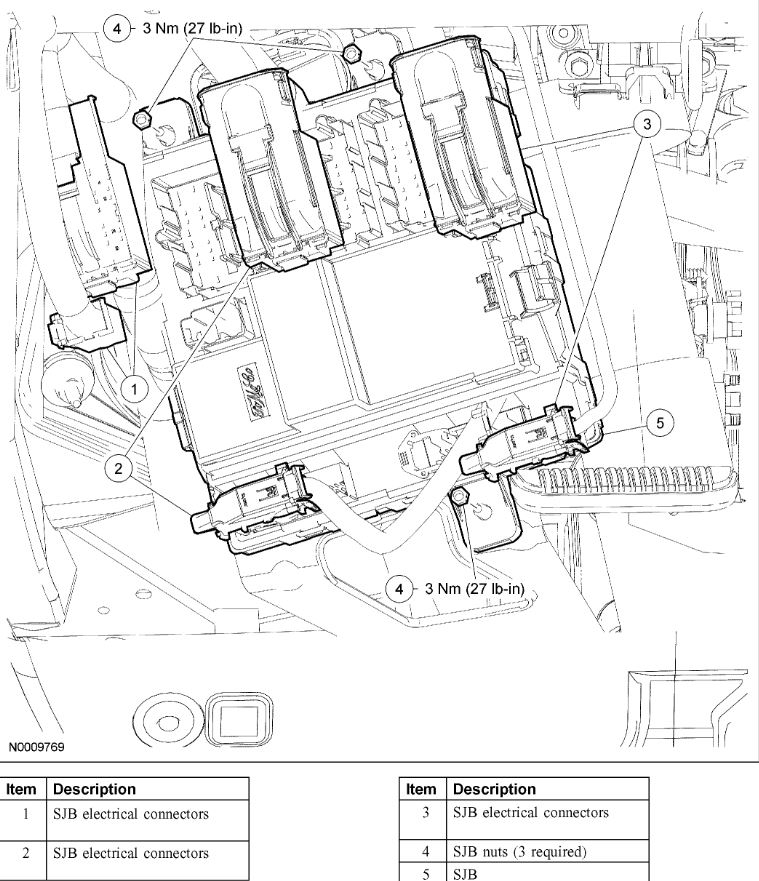 The first image is the SJB, the next three are the power and ground connections for it. There are two other connectors but they do not have power and ground pins, only control and output signals. Testing for powers and grounds is easy using a cheap test light and reading what the pins do, some have power with the key on, some in start and some are full time power.