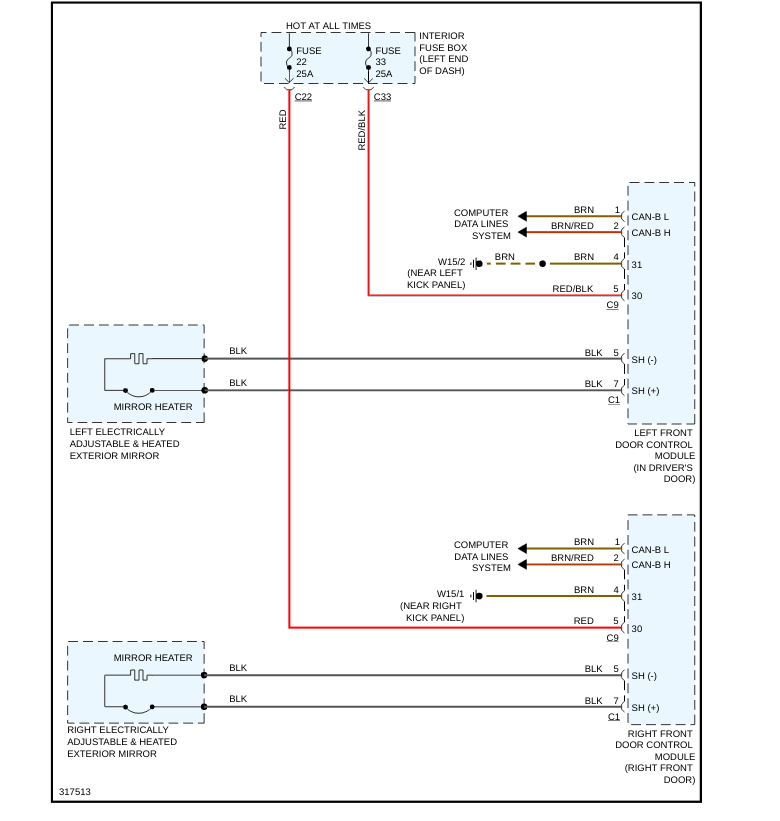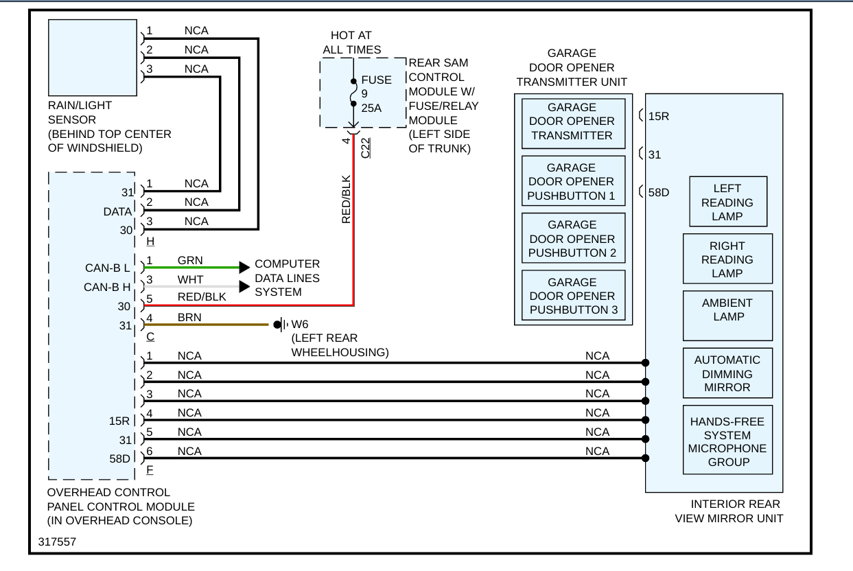 Need the pin out that goes to drivers side view mirror motor. It comes from the DCM modules 1 and 6. It is 7 wires going into an 8 pin module that plugs into mirror motor with pin #4 vacant. Please help. Thanks