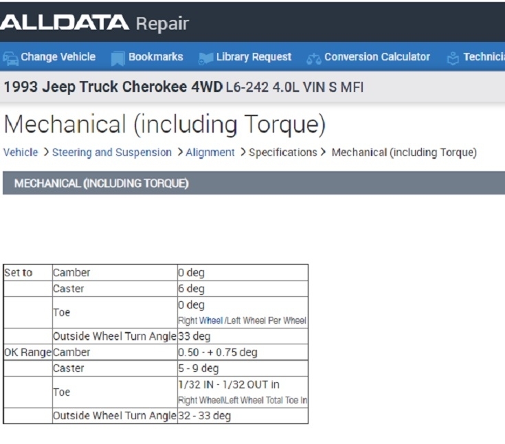 The other variable most people aren't aware of is sagged springs. That changes the geometric relationship of the steering and suspension parts, and how they react to road forces. Every tire and alignment shop has a small book that shows the places to measure and what the measurements should be for every year and model. I can only find the rear specs for your vehicle to show you what we look for. The first picture shows the specs for the rear suspension and what they should be. Most manufacturers have you measure between a point on the vehicle, to the ground. Chrysler has always used methods that at first seem rather complicated, but they take into account different tire sizes. Here they show measuring from the axle tube to the frame. It doesn't matter what the tire size is. Conscientious alignment technicians will measure ride height before agreeing to align the vehicle. Sagged ride height is much less of a problem with this suspension design, but it can be a huge cause of poor tire wear on other models even when the alignment numbers look perfect.