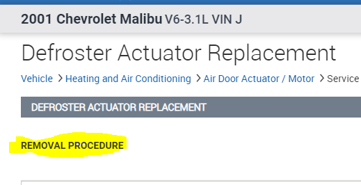 I would recommend making that determination first because the defroster actuator (which is vacuum operated) requires the removal if the instrument panel carrier. (Not a fun job)