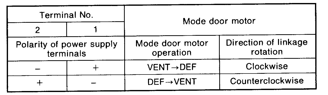 1) When approx. 12 V is applied to the mode door motor terminals, mdde door motor operates as tollows: