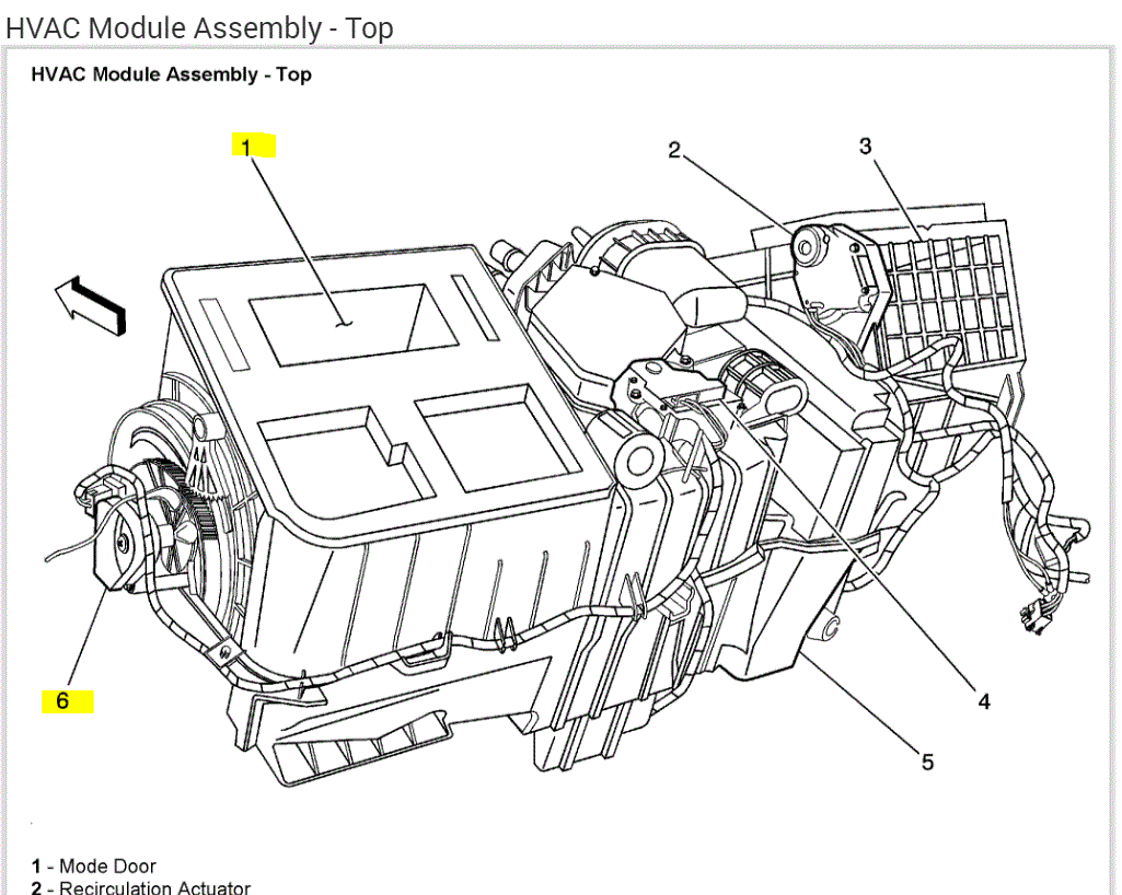 The air flow directions is controlled by a mode door and mode door actuator. Based on the options, either the actuator will be electric or a cable.