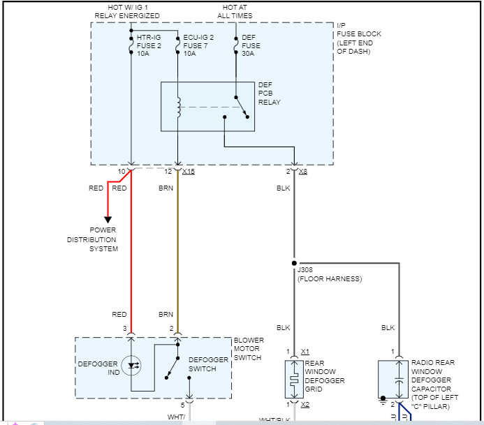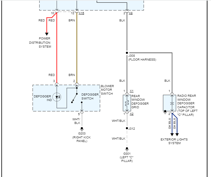 I attached the wiring schematic for the rear window defogger below. The pic was only one page long, but I cut it in half to make it readable for you.