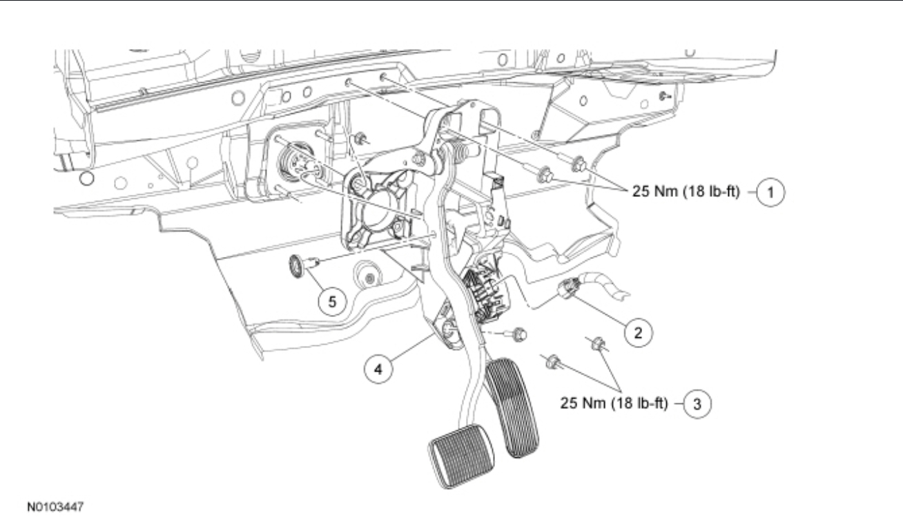 1 W709633 Brake pedal bracket bolts (3 required) - - 25 Nm (18 lb-ft)
