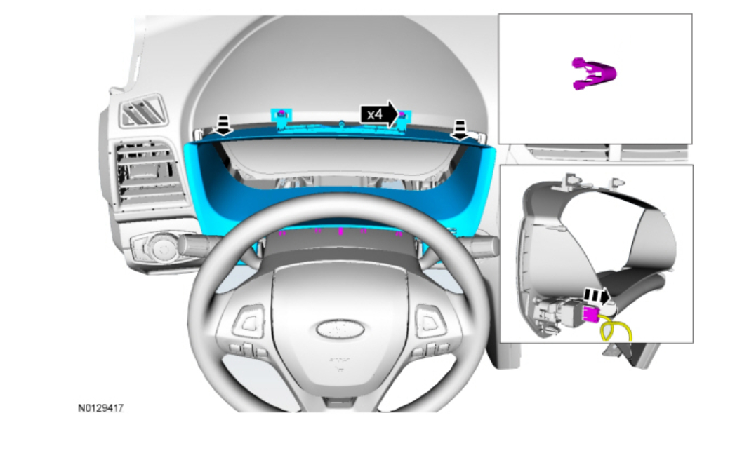 NOTE: Steering wheel shown removed for clarity.