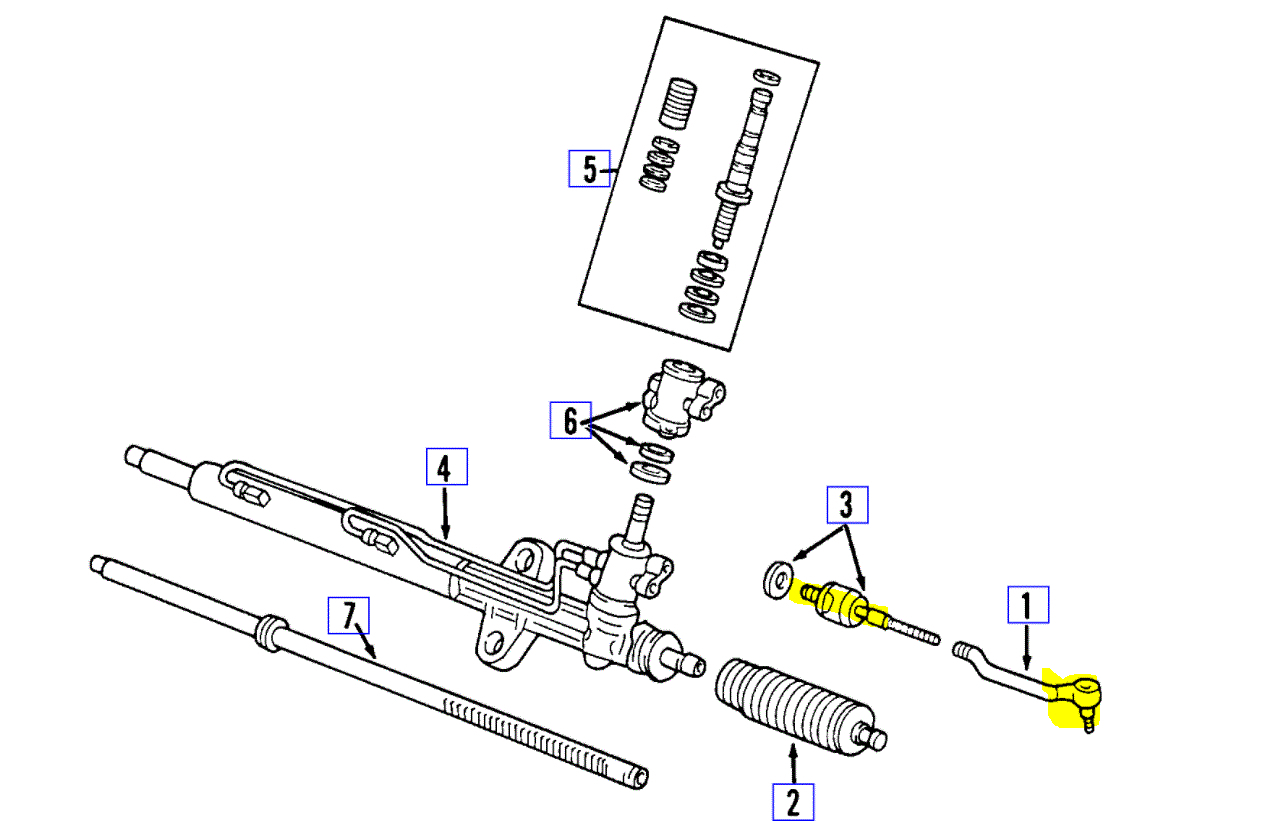 If you look at the attached pic, I highlighted both inner and outer tie rods. Both sides of the vehicle will have the same parts. Pay attention to where the joint is located for play.