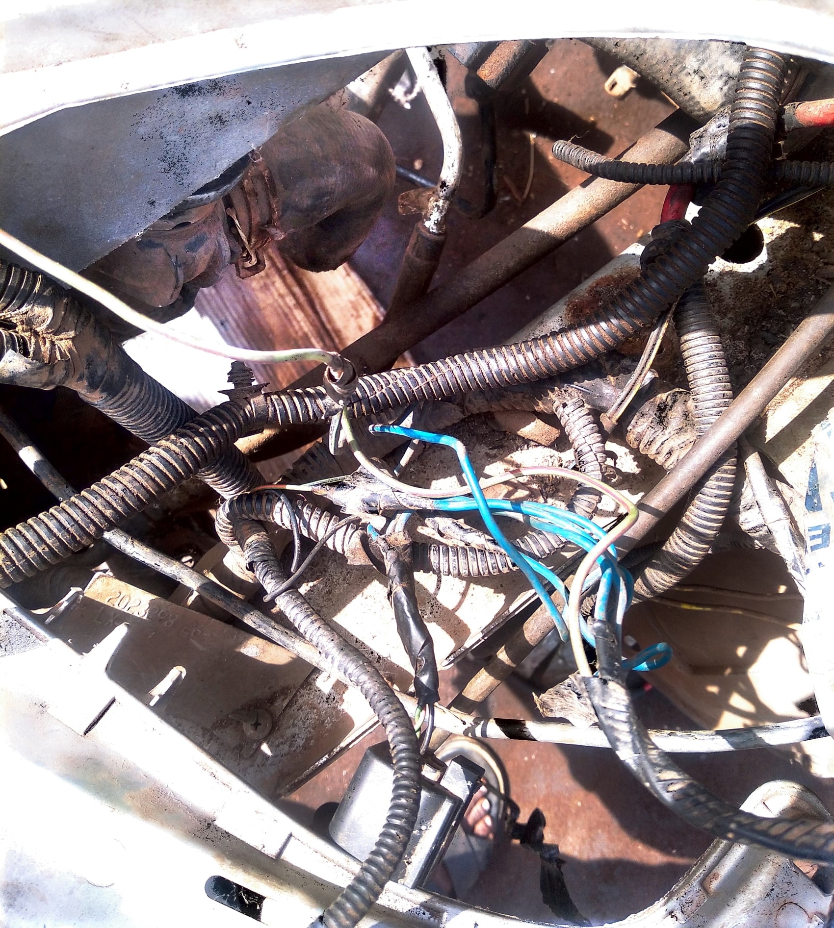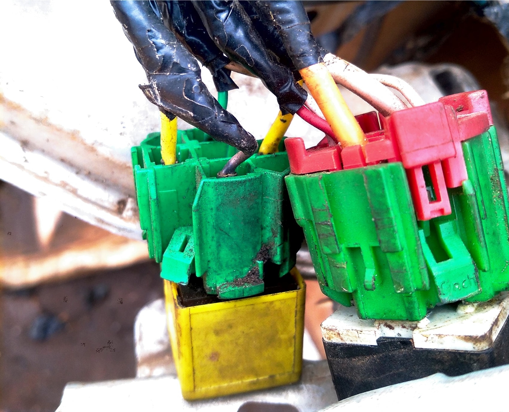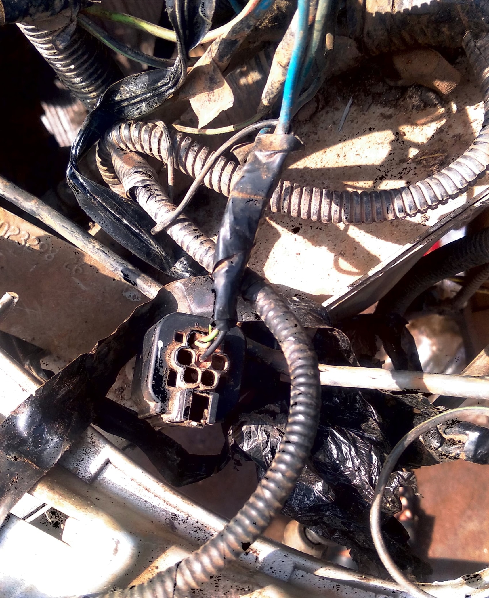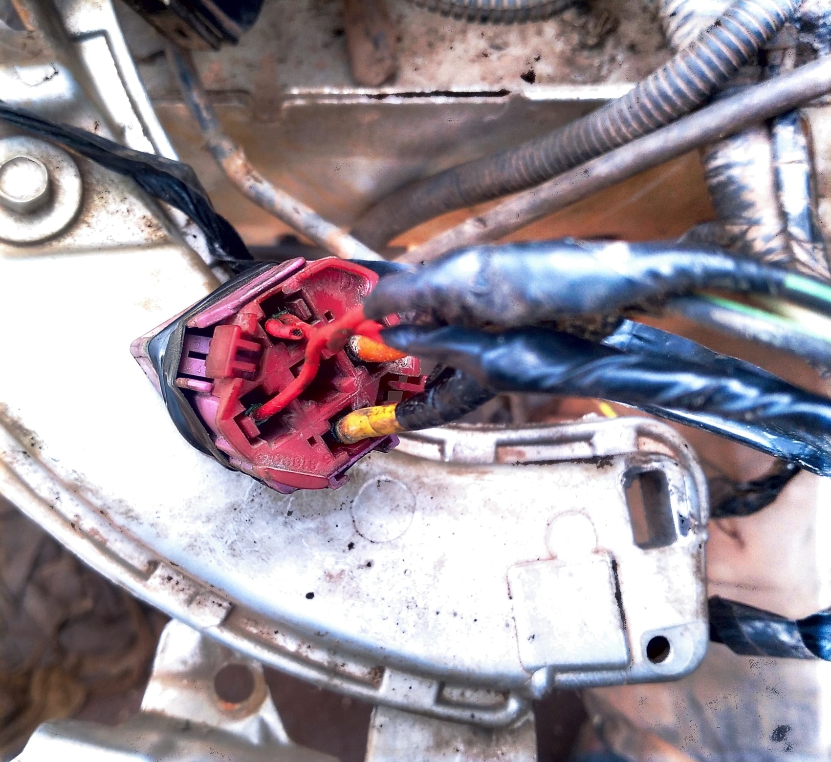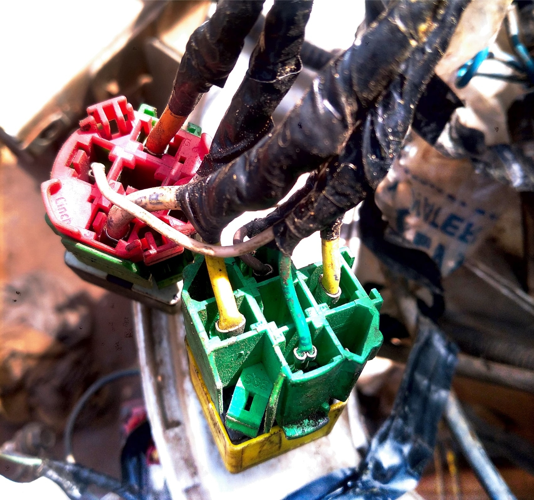 The reason I'm confused is you didn't mention any of the wire colors I mentioned. If you were to clean the wires, can you tell if what I mentioned is present? I'm not sure why, but if appears different wiring was spliced in place of the original wiring and then insulated with electrical tape. When you join wires together, they need to be soldered and heat shrink needs to be placed over the connection for insulation. You can't twist them together and tape them. The connection will eventually fail.