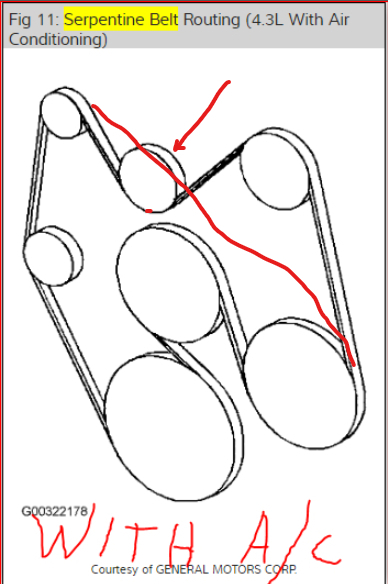 I've attached two pictures of the belt diagrams one with A/C, and one without. Usually if your car is equipped with factory air the compressor has to be removed and an idler pulley put in its place.