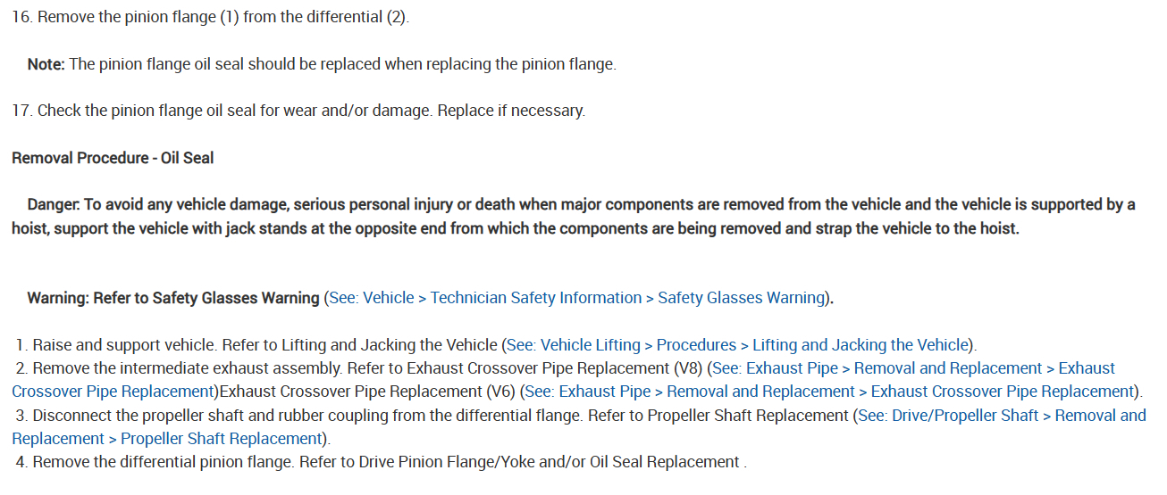 It is not too bad to change out the pinon flange, (differential yoke). You will need to remove the driveshaft first and you will need a puller and a way/tool to hold the yoke. The most important part is to not over tighten the yoke once it is reinstalled. Here are the instructions on how to do the job. Check out the images (below).