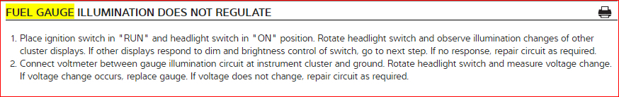 The digital fuel gauge does not light/work. The speedometer and message center both work. However, the message board is reading 0 miles to empty when the distance to empty button is pressed. It has gas. Any suggestions would be appreciated.