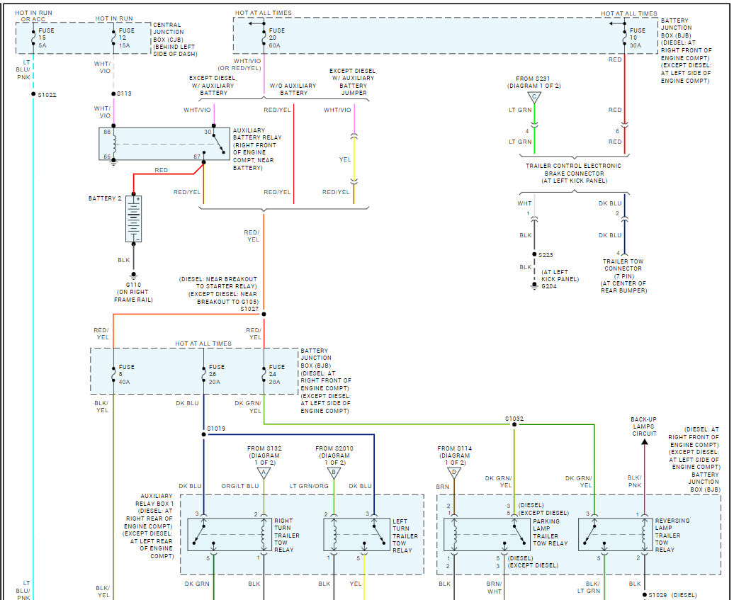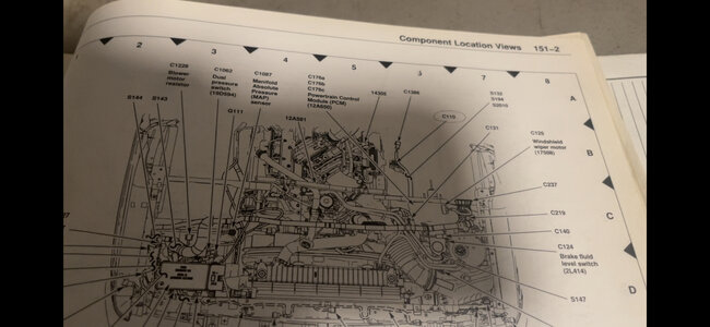 Anyhow this brown wire at the connector in the corner under the vehicle becomes a brown wire with a white stripe, its cable assembly goes all the way along the frame rail to the front of the vehicle where it goes into connector 110. Pin 7. Bn/wh, ckt 962