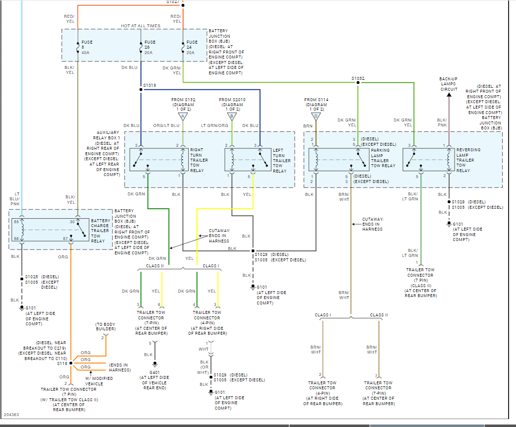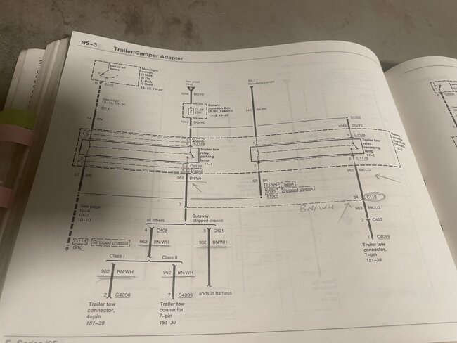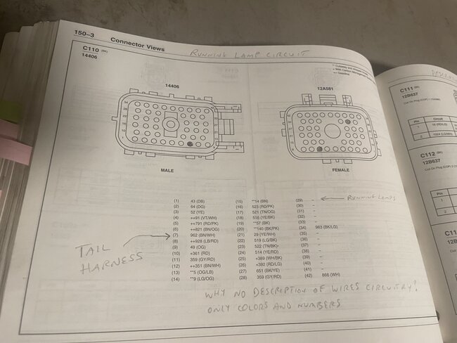 this is on the list of pins for that connector and I can now see that the other end of that connector which comes from the engine compartment is an unknown color or origin at this point till I can dig more tomorrow, but I will say it looks like according to the diagram this is not a direct brown wire junction, it is coming from one of the tow parking lamp relays in the fusebox.